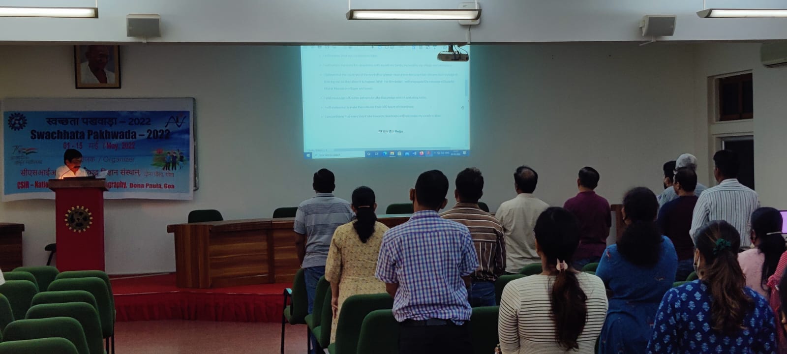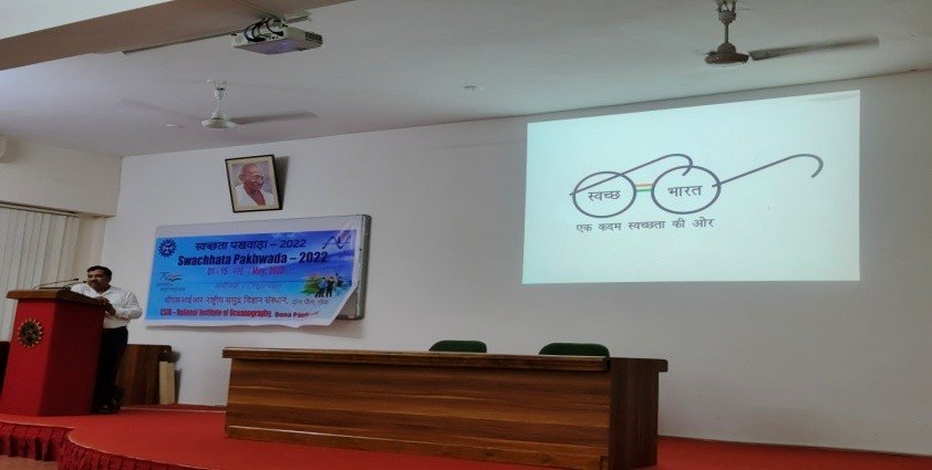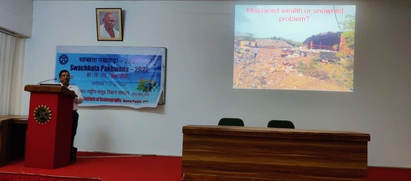 Dr. Pradip Sarmokadam, Member Secretary, Goa State Biodiversity delivered a lecture on the Waste Management at NIO on 11th May 2022. This was followed by interaction with NIO Scientists and Short play by Students SETHU group on Swachhata for common man.