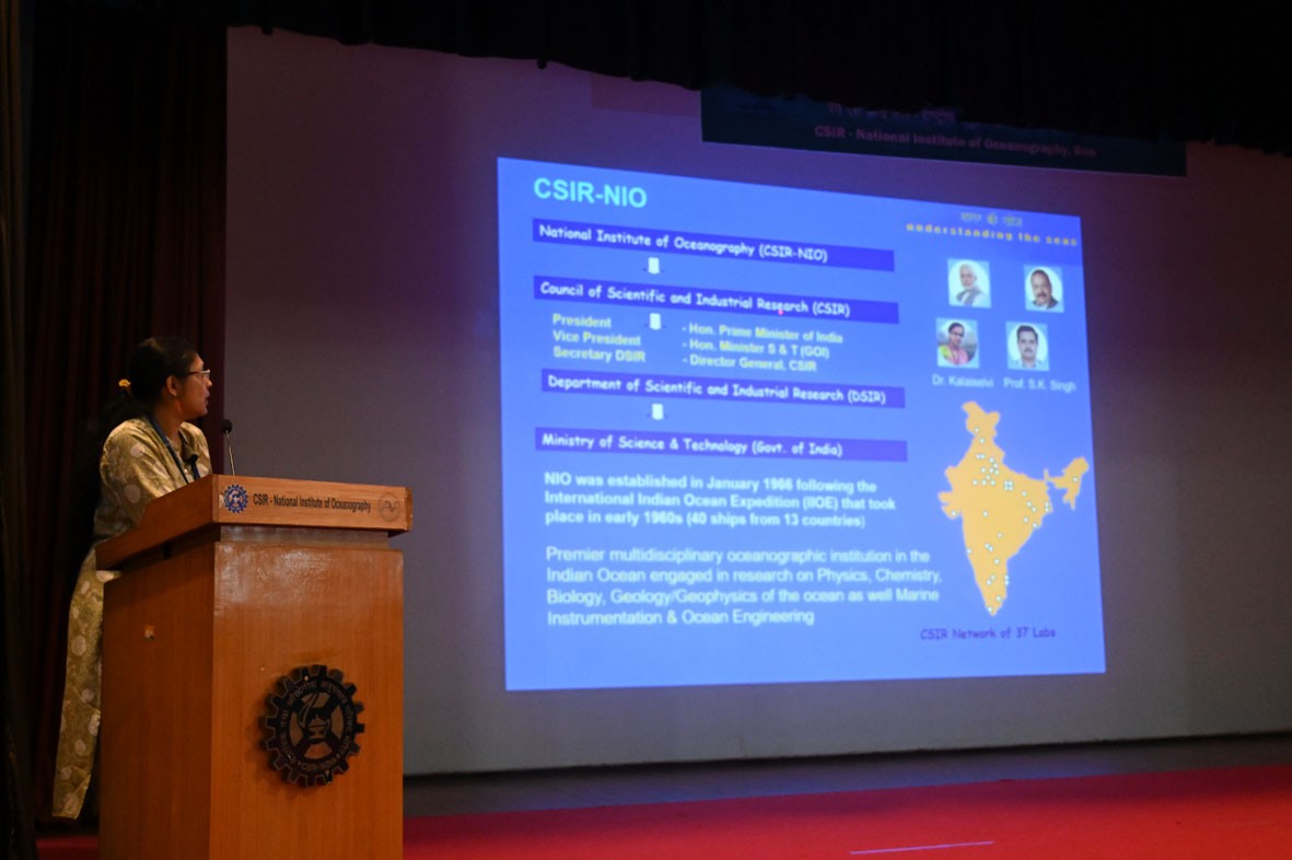 CSIR-National Institute of Oceanography celebrated the 82nd Foundation Day of the Council of Scientific and Industrial Research (CSIR), on 26th September 2023 from 0930 hrs to 1500 hrs. On this occasion, over 250 students, teachers and general public visited CSIR-NIO to know more about the scientific endeavors in ocean research. The students also got an opportunity to visit the exhibition on marine resources and instruments and view films on ocean sciences. A lecture on 'Careers in oceanography' was delivered on this occasion for the students of standards XI and XII in CSIR-NIO auditorium.