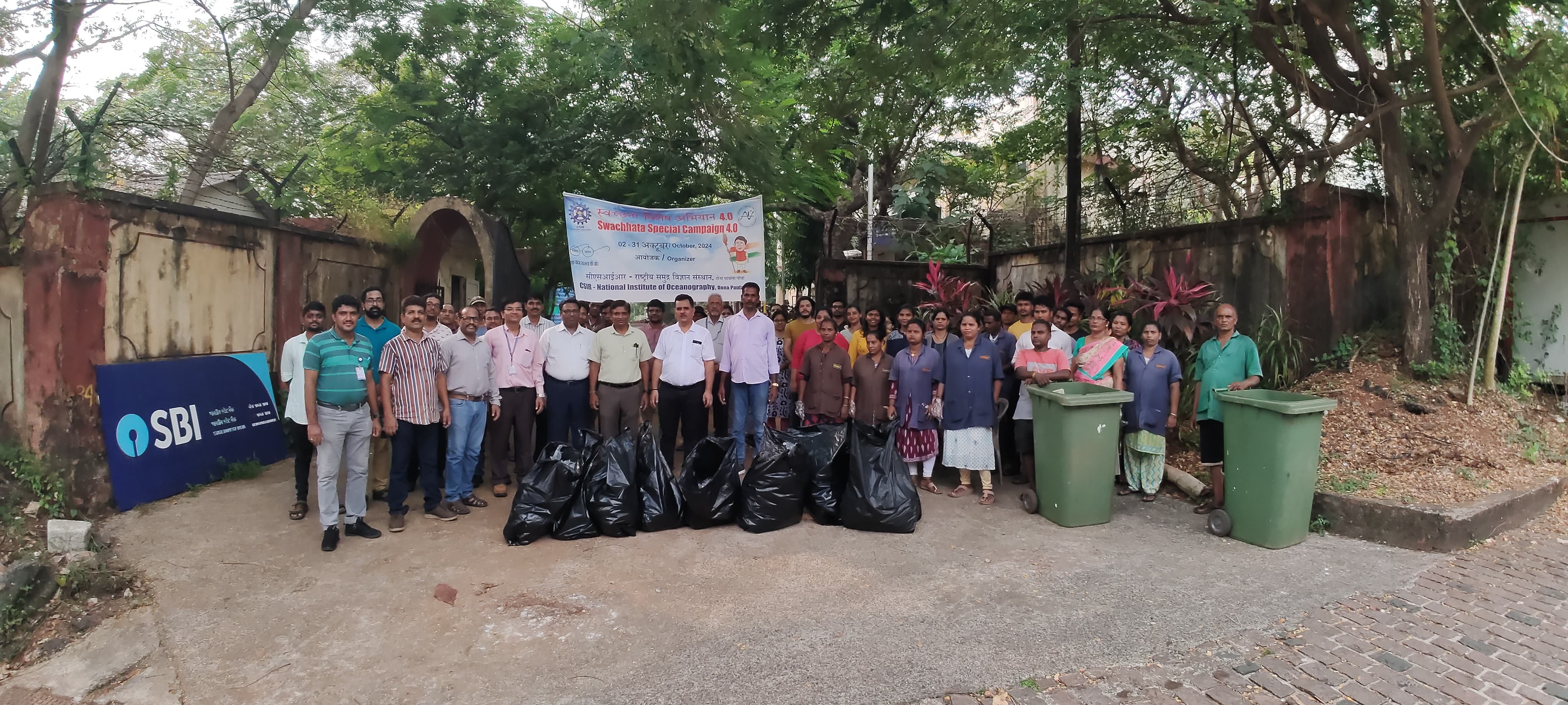 As part of Special Campaign 4.0, CSIR-National Institute of Oceanography, Goa organized a cleanliness drive at the headquarters and regional centers in October 2024. Director, Staff, and Research Students participated in the cleanliness drive.