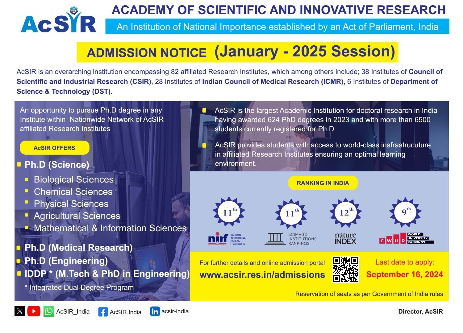 AcSIR invites applications for the January 2025 session